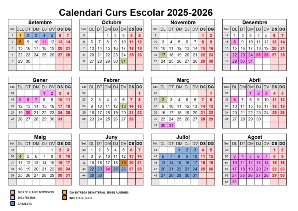 Calendari curs 2025 – 2026: