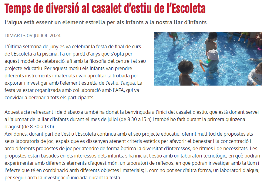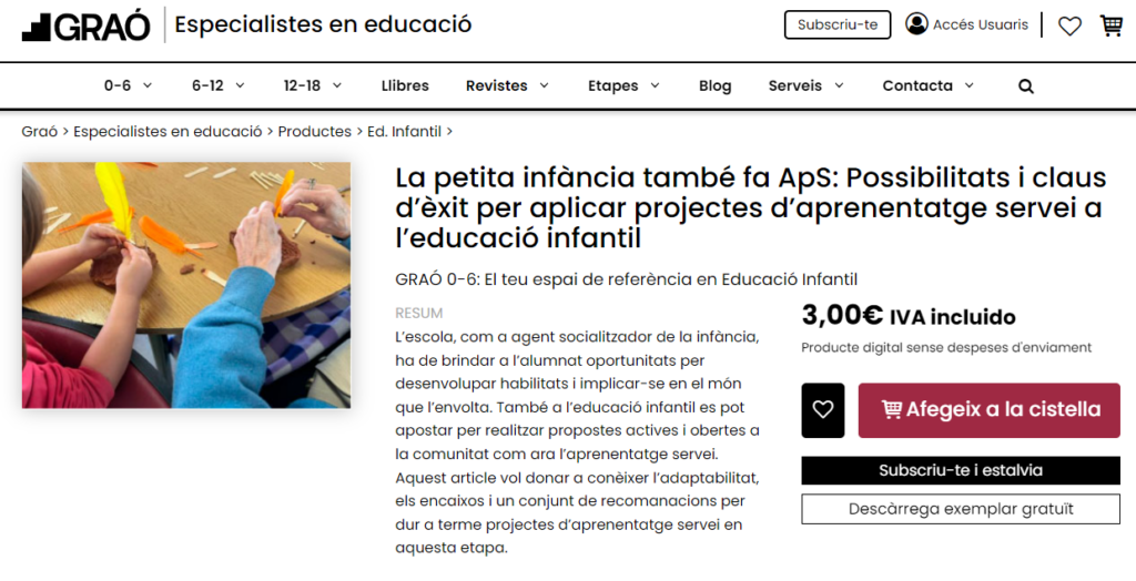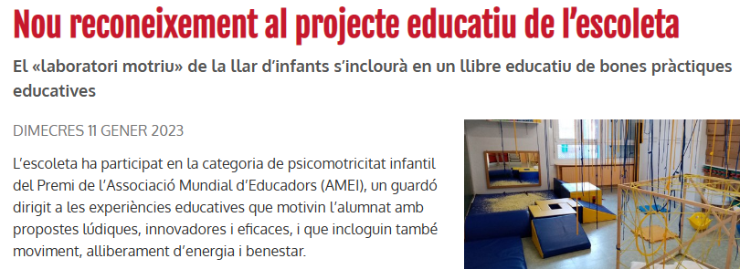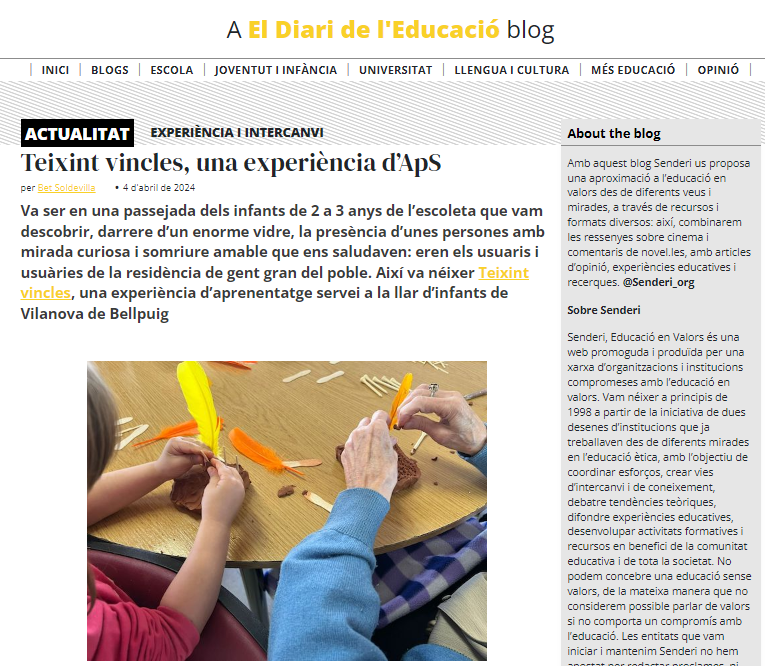 El projecte d’Aprenentatge Servei de l’escoleta referenciat com a model de pedagogia de la reciprocitat a un article de Graó Editorial, una de les editorials referents a nivell pedagògic. S’hi pot accedir aquí.