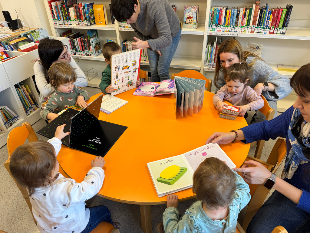 • Oferim espais de biblioteca i lectura, en els que aprenem a estimar i tenir cura del contes. També fem visites a la biblioteca del poble i de l’escola Marinada.