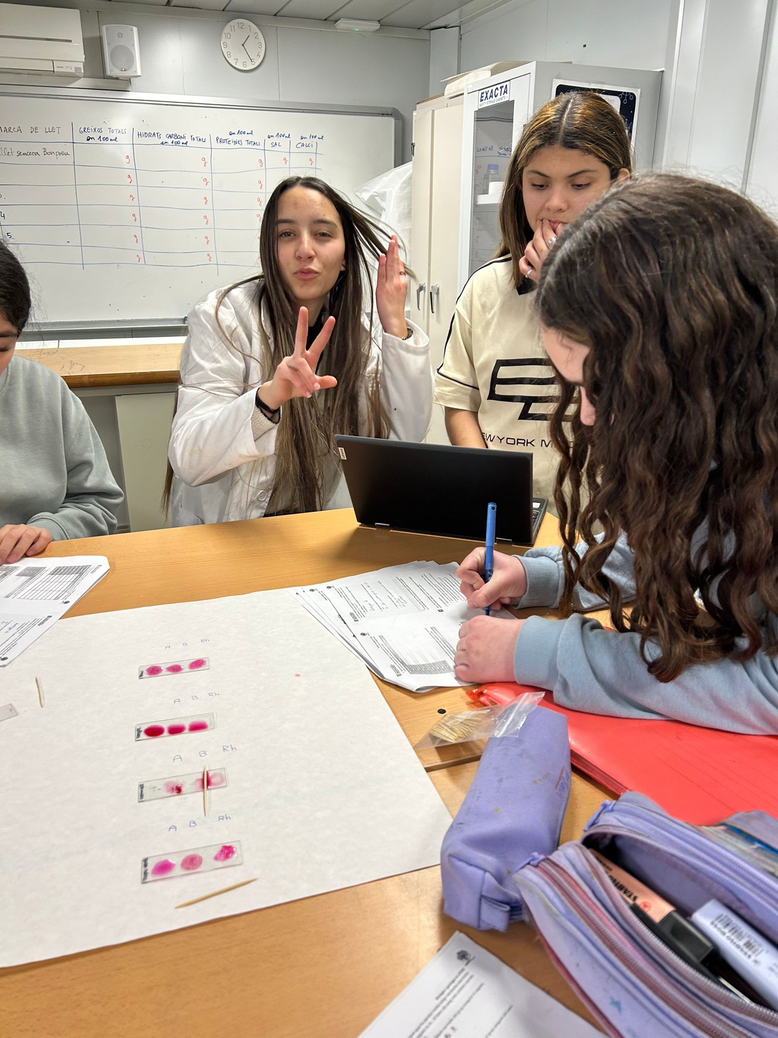 L’alumnat de 3r d’ESO ha estudiat els grups sanguinis de quatre mostres diferents.