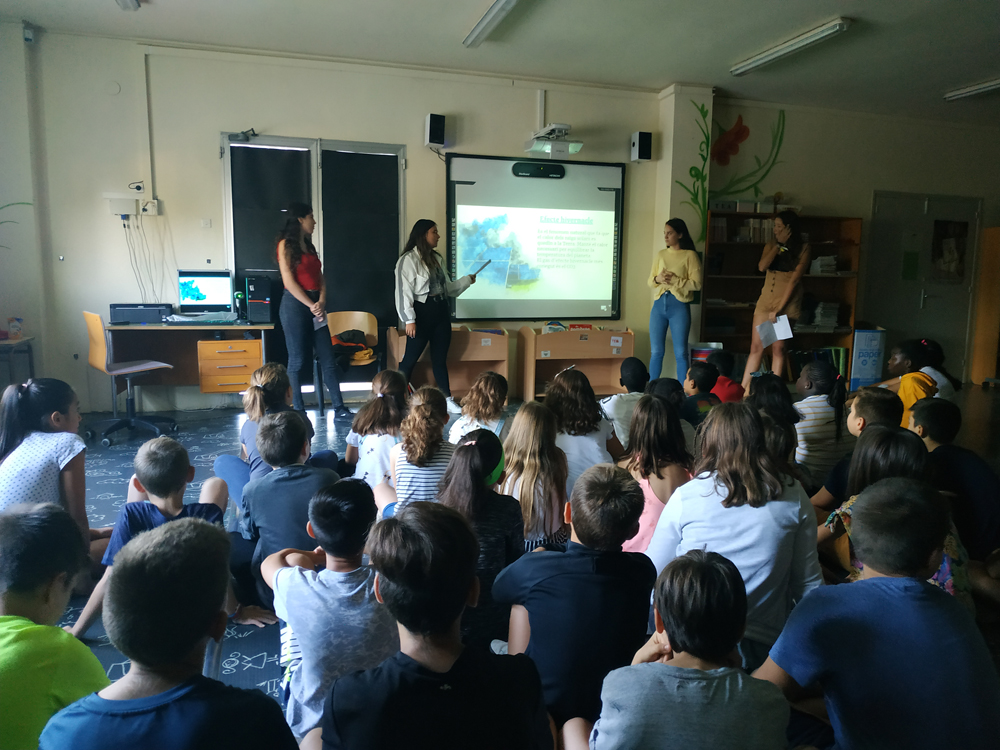 A més, van preparar una presentació sobre les causes i les conseqüències de l’escalfament global per tal d’informar els més petits d’aquesta situació. Van passar per les classes de 1r i 2n d’ESO, així com pels nivells de primària de l’escola veïna Jacint Verdaguer.