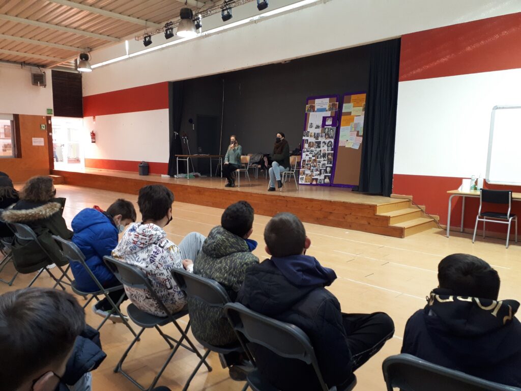 Aquesta setmana l’alumnat de 2n d’ESO ha participat de l’activitat de teatre fòrum “Això és amor?” A través de la història d’una parella,  anant enrere en el temps fins als seus inicis reflexionem i entenem allò que els ha portat fins on són ara. Aquí apareixen els mites de l’amor romàntic, les violències quotidianes i