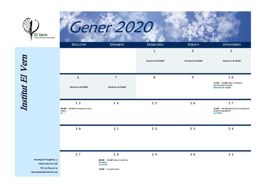 Descarrega’t el calendari de gener en format pdf clicant AQUÍ