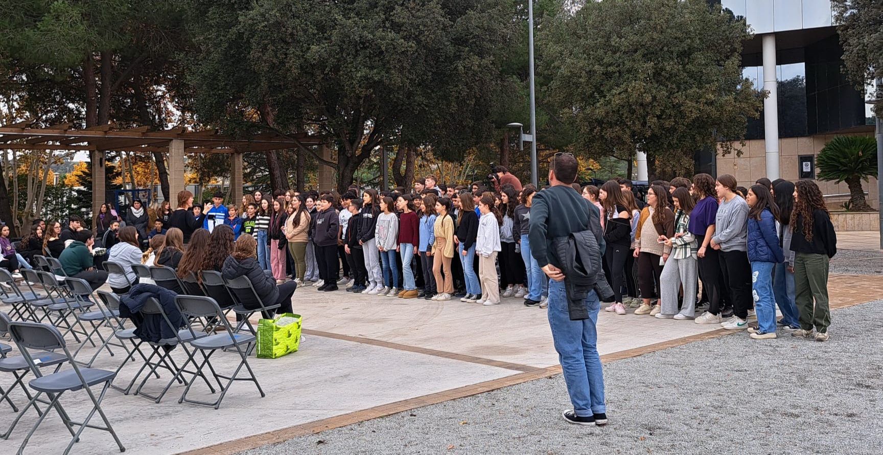 L’alumnat de l’institut representat pels nois i noies de 1r i 2n d’ESO i pels delegats de tot el centre, van fet parlaments, van explicar el treball fet a l’institut durant les darreres setmanes en relació al tema. També ens van oferir dues performances artístiques i van cantar una cançó.