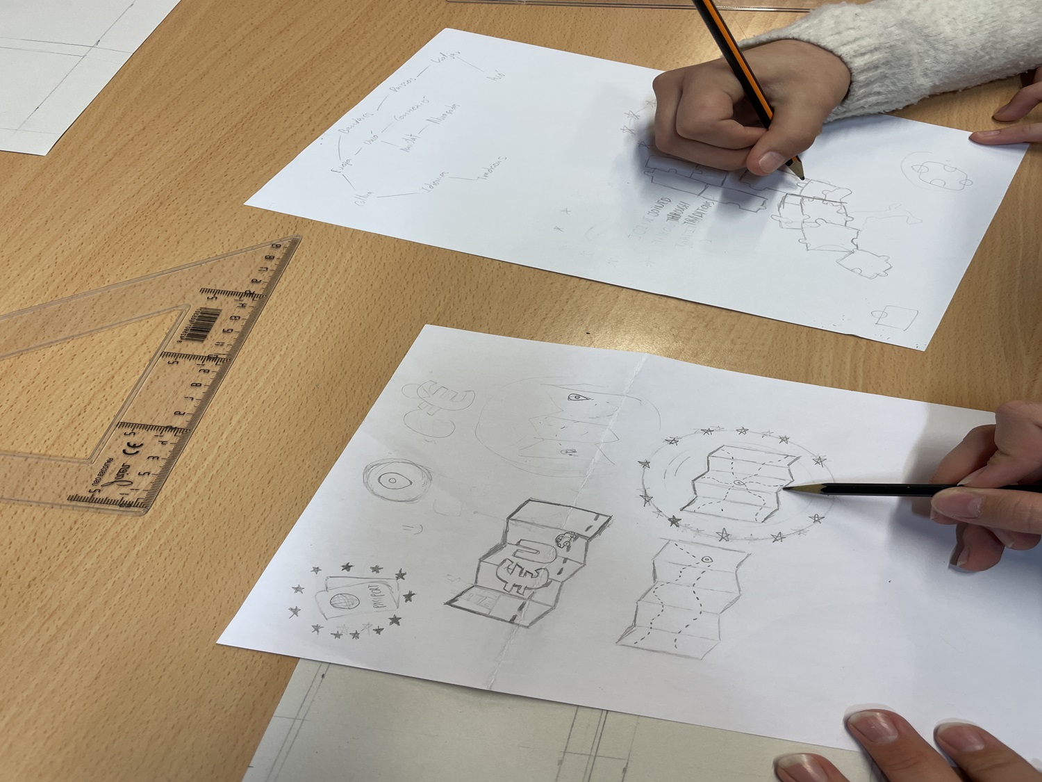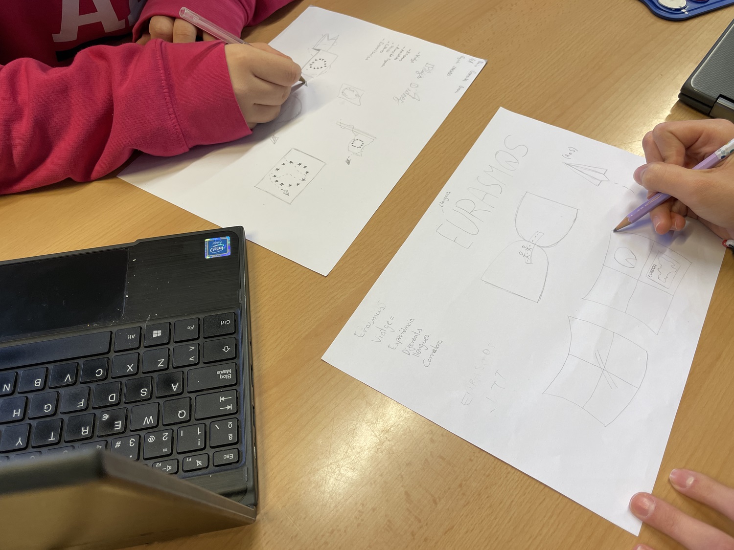 L’alumnat d’Expressió Artística de 4t d’ESO ha treballat la creació del logotip del projecte Erasmus. El lema d’aquest curs és “Joined through Traditions”. En primer lloc, es van analitzar les característiques principals dels logotips i la seva funció comunicativa. A partir del briefing i d’una pluja d’idees sobre allò que es volia transmetre, cada alumne va elaborar un recull d’esbossos inicials, experimentant amb diferents composicions i propostes visuals.