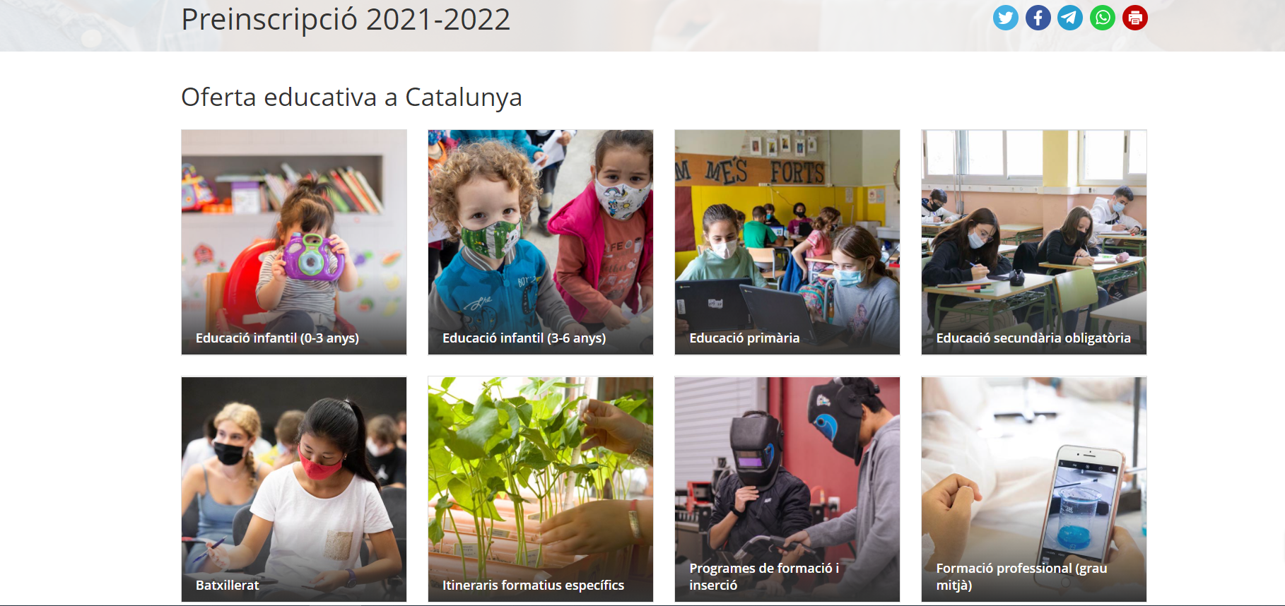 Avui es posa en marxa el nou web preinscripcio.gencat.cat, que neix de la voluntat d’acompanyar millor les famílies durant el procés de preinscripció 2021-2022 als ensenyaments obligatoris. Aquest nou portal temàtic veu la llum en el context de pandèmia per la covid-19 i permetrà donar suport en la tramitació telemàtica de la preinscripció.