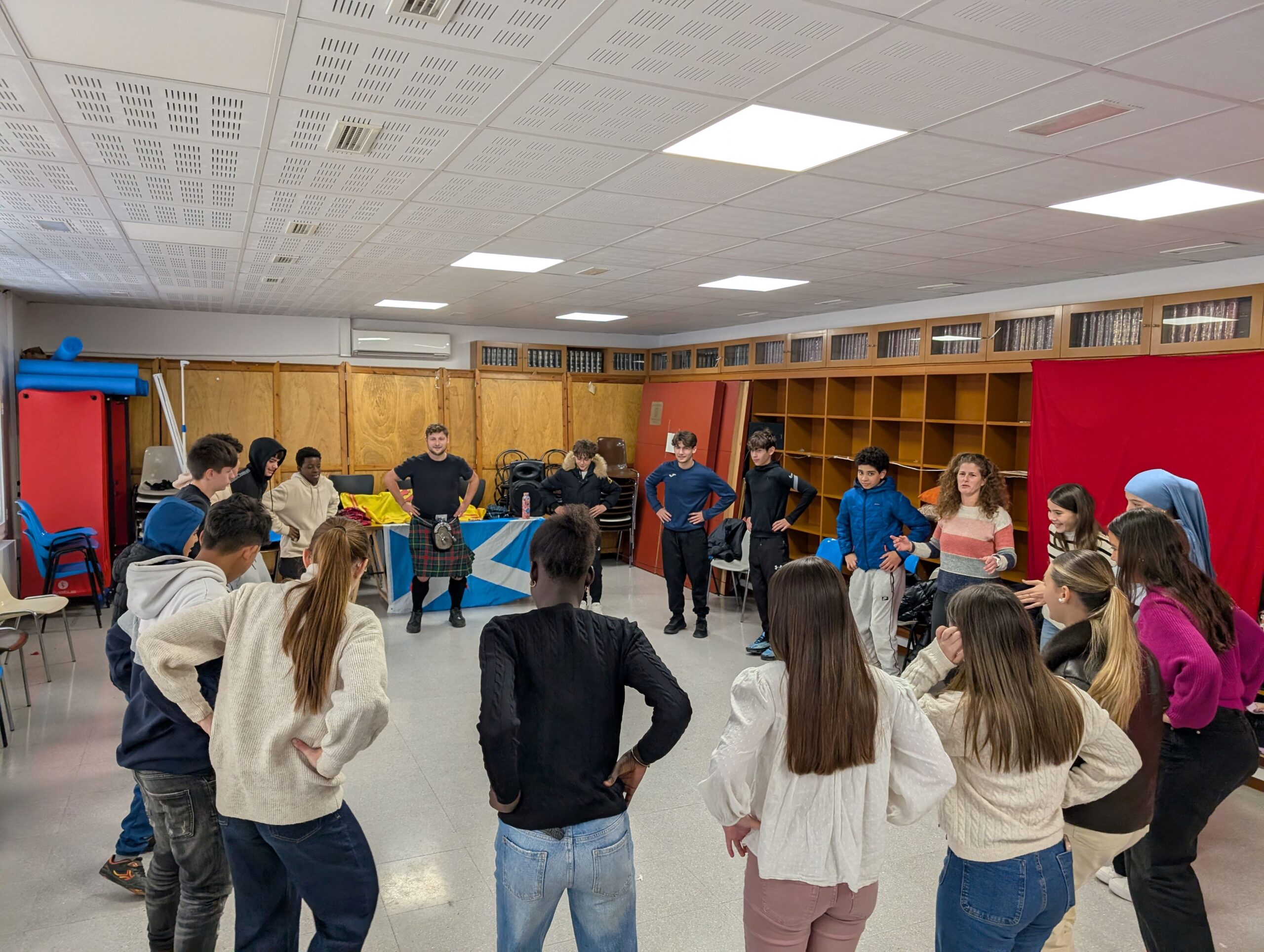 Els alumnes de 1r i 3r d’ESO van fer una immersió plensa en la cultura escocesa de la mà d’en Thomas Smith. Un escocès d’Inverness que els va apropar la seva cultura a través de la dansa i la música.