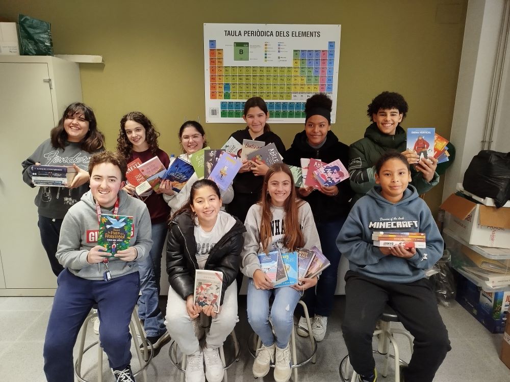 L’alumnat que va obtenir el primer i el segon premi del concurs també ha rebut el seu lot de llibres i tenen lectura per gaudir durant molts dies!