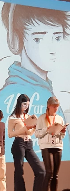La June Gaztelu, representant de la categoria de Corsaris (1r i 2n d’ESO), va llegir un fragment d’Un far a la fi del món de Gerard Guix, i la Judit Boix, la Mariona Fresquet i la Martina Gómez, representants de la categoria de la Tropa de Corsaris (3r i 4t d’ESO), van llegir de forma conjunta un fragment de la novel·la Noel et busca de l’Àngel Burgas. Totes van fer una lectura excel·lent.