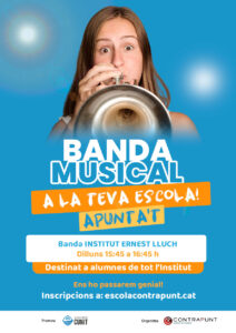 L’Escola Municipal de Música de Cunit ha iniciat una extraescolar gratuïta de Banda Musical a l’institut Ernest Lluch i Martin, així que, si us agrada la música, convidem als alumnes de tot l’institut que vinguin a provar l’experiència de tocar a una Banda Musical.