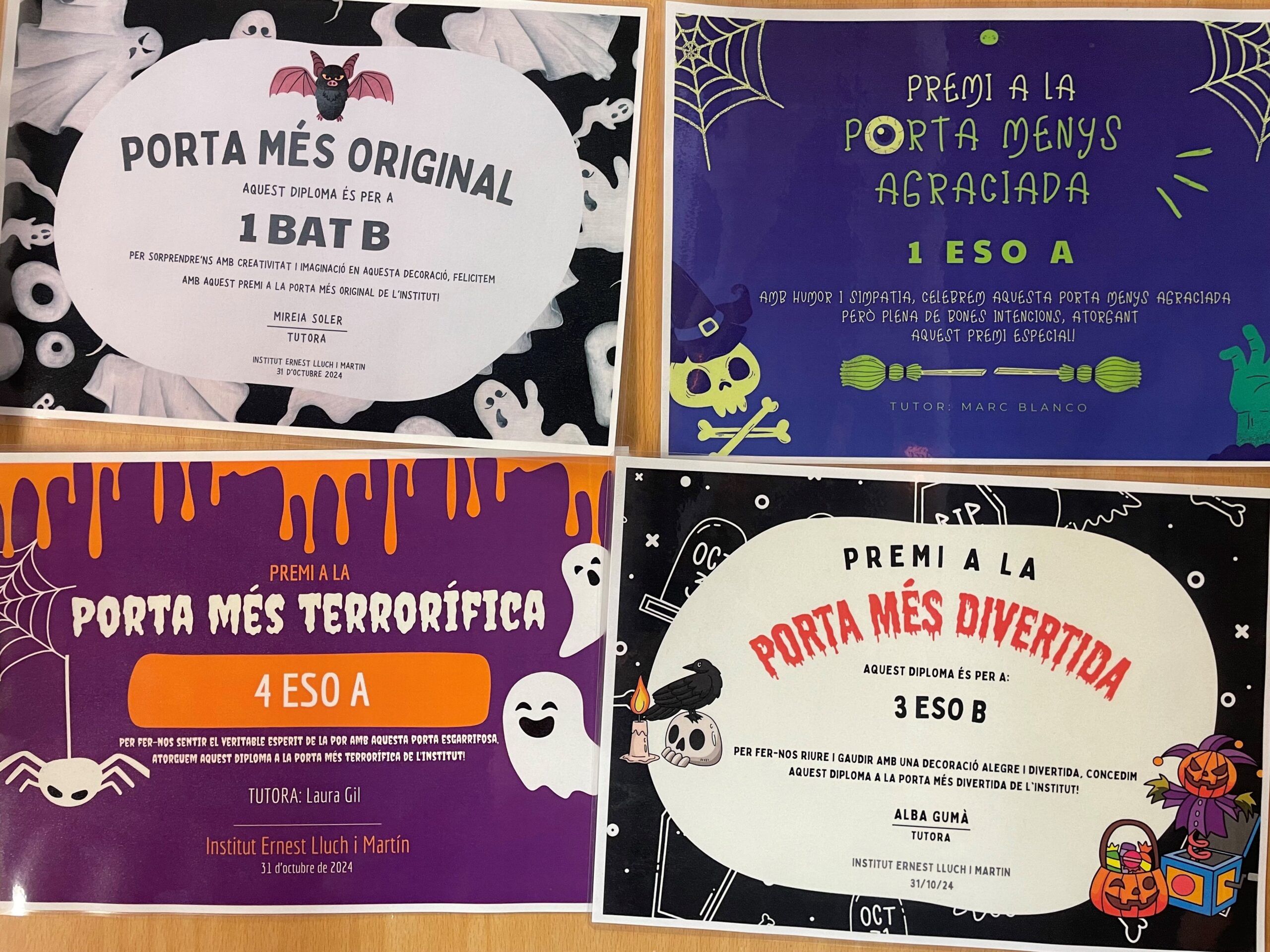 Però la festa de Castaween no s’acabava aquí. En paral·lel, l’institut va organitzar un concurs de decoració de portes per celebrar Halloween. La creativitat dels nostres alumnes va posar-se a prova i van superar totes les expectatives! Va ser molt difícil triar els guanyadors, però després de molta deliberació, el jurat va prendre una decisió. Els grups guanyadors van rebre, la setmana següent, una merescuda recompensa: una deliciosa coca amb xocolata que van gaudir a l’hora del pati.