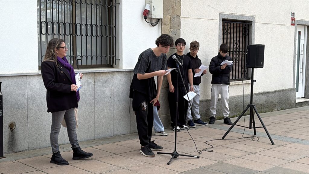 El dilluns 9 de març, a la porta de l’Ajuntament, l’alumnat de 4t F va llegir el manifest del Dia Internacional de la Dona.