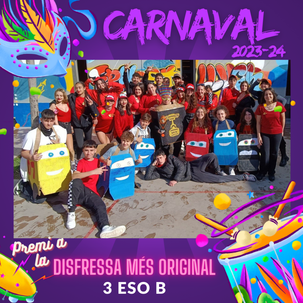 Com ja sabeu, el passat divendres 9 de febrer vàrem celebrar el Carnaval al centre. Després del pati, l’alumnat i professorat que ho va desitjar, es va disfressar. A causa de la puja, en un primer moment, la celebració es va fer dins del gimnàs. Posteriorment, vam poder sortir a l’àgora per seguir gaudint de la celebració.