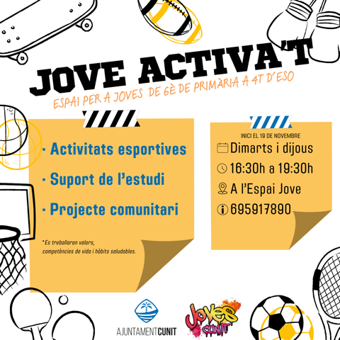 A partir del 19 de novembre començarà el Jove Activa’t, un espai adreçat a joves a partir de 6è de primària a 4t d’ESO on