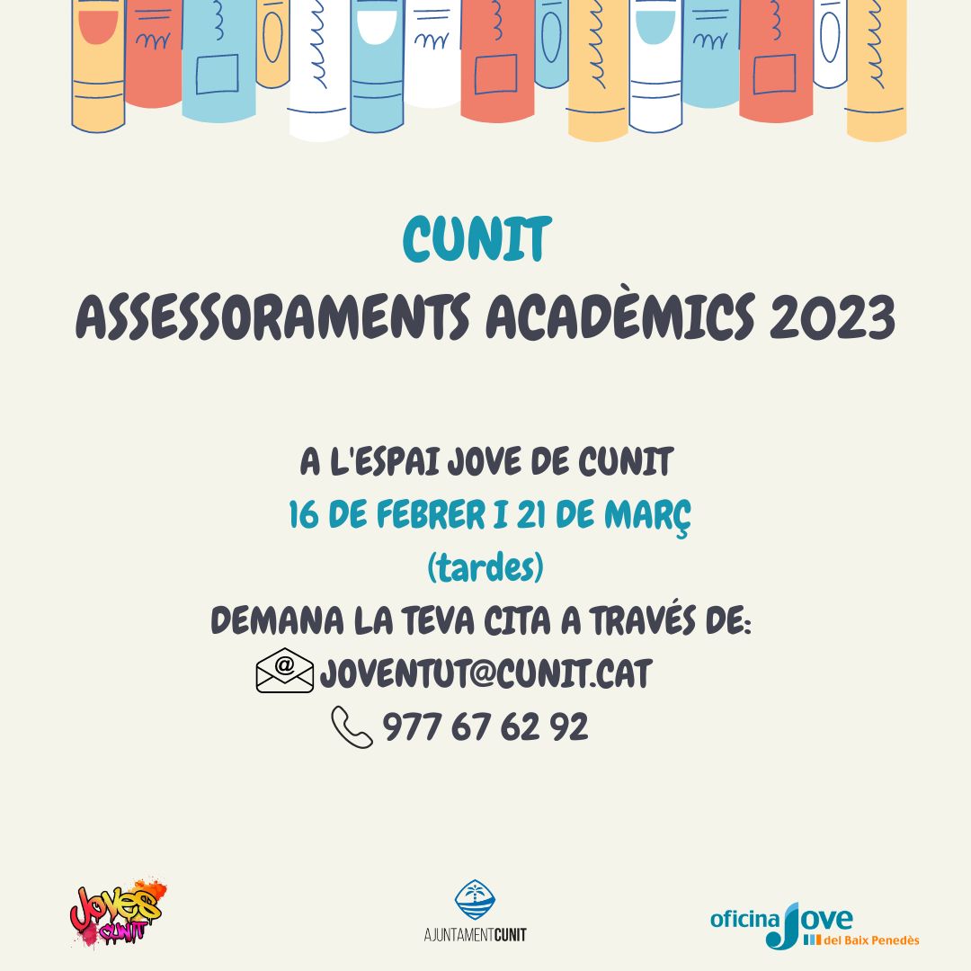 Des de l’Ajuntament de Cunit, posen a disposició dos dies per a fer consultes de caire acadèmic a l’Espai Jove, 16 de febrer i 21 de març amb cita prèvia. Aquests assessoraments són a càrrec de les tècniques de l’Oficina Jove Comarcal. Així evitem al nostre alumnat desplaçaments fins al Vendrell.