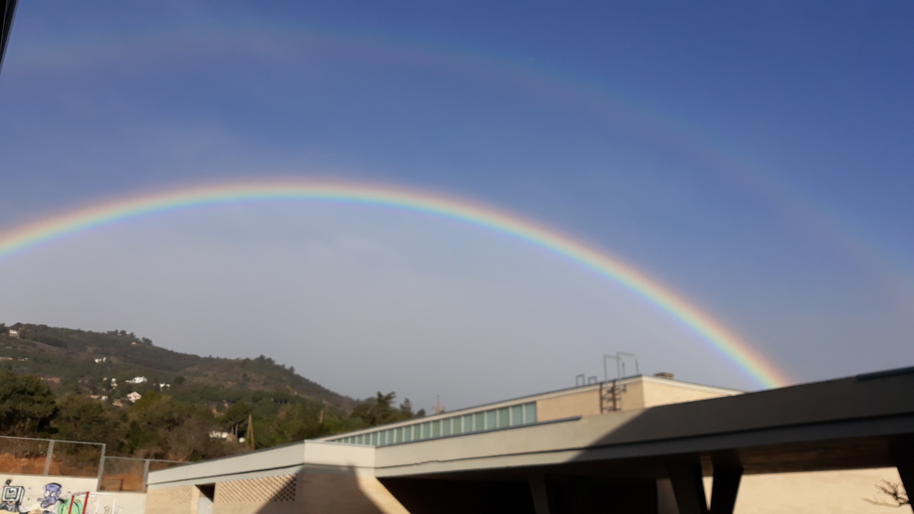 Arc de Sant Martí Feu un comentari / Per admin / 28/01/2019 / General Portada Avui a l’institut, a causa d’un temps canviant fruit del fort mestral i la poca precipitació que queia, hem pogut veure un magnífic fotometeor (Arc de Sant Martí). Us compartim dues magnífiques imatges