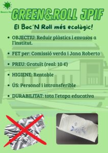 El passat divendres 3 d’octubre, l’alumnat de 4t d’ESO que participa en el projecte Eco-reptes va celebrar la presentació del Green & Roll, un embolcall reutilitzable pensat per substituir el paper d’alumini i altres materials d’un sol ús en els entrepans.