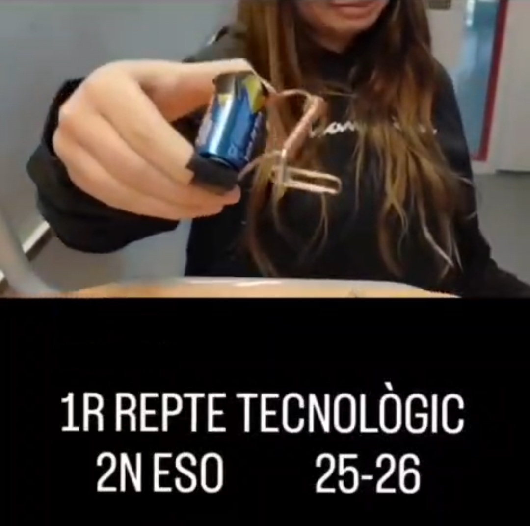 L’alumnat de 2n d’ESO ha realitzat el seu primer Repte Tecnològic, on ha posat en pràctica els fonaments de l’electromagnetisme mitjançant el disseny i la construcció d’un electroimant. A través d’aquest projecte, han desenvolupat habilitats tècniques i capacitat de resolució de problemes, aplicant els coneixements teòrics a una situació real i experimental. Un repte que fomenta la curiositat, l’aprenentatge actiu i el pensament tecnològic.