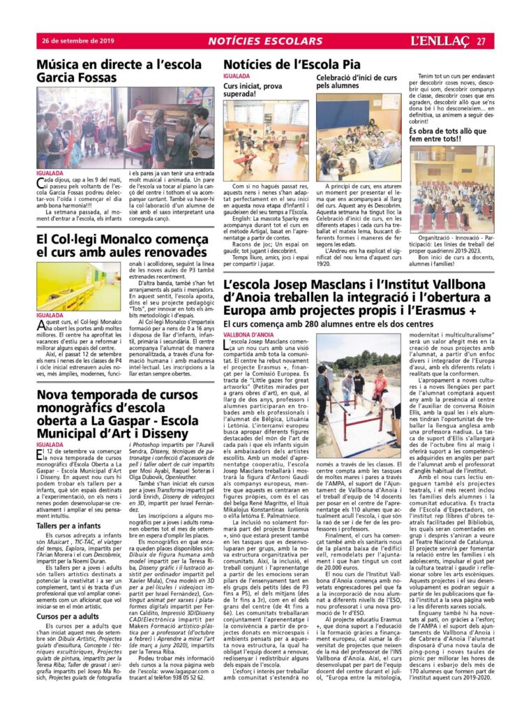 ➡ Publicació de l’article al diari local La Veu de l’Anoia: http://veuanoia.cat/lescola-josep-masclans-i-linstitut-vallbona-danoia-treballen-la-integracio-i-lobertura-a-europa-amb-projectes-propis-i-lerasmus/