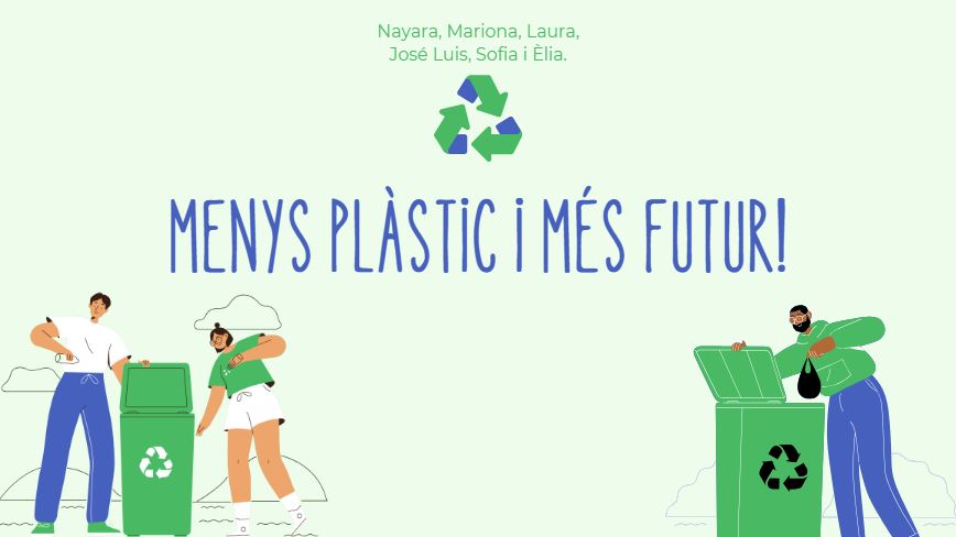 L’alumnat del Pla d’Acció 1: Escola Verda ha preparat una campanya de conscienciació ambiental per a l’institut anomenada Menys plàstic i més futur. El projecte vol fomentar el reciclatge de residus a l’escola, el civisme i neteja de les aules, i l’ús responsable de carmanyoles o porta entrepans reutilitzables per tal de reduir l’ús de paper de plata o embolcalls plàstics.