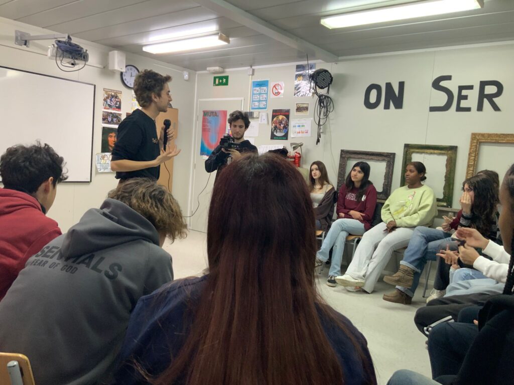Després d’aquesta introducció, vam passar a una dinàmica més interactiva: una roda de preguntes a l’atzar. Cada una de les persones que estàvem presents al taller va tenir l’oportunitat de sortir davant de l’audiència durant un minut i intentar convèncer els altres sobre qualsevol tema que triéssim. Aquesta activitat no només va ser divertida, sinó que també va servir com a una valuosa pràctica per aprendre a parlar en públic. A través d’aquesta experiència, vam treballar en la creació de discursos efectius i en la importància de saber expressar-nos amb claredat i confiança davant d’una audiència.