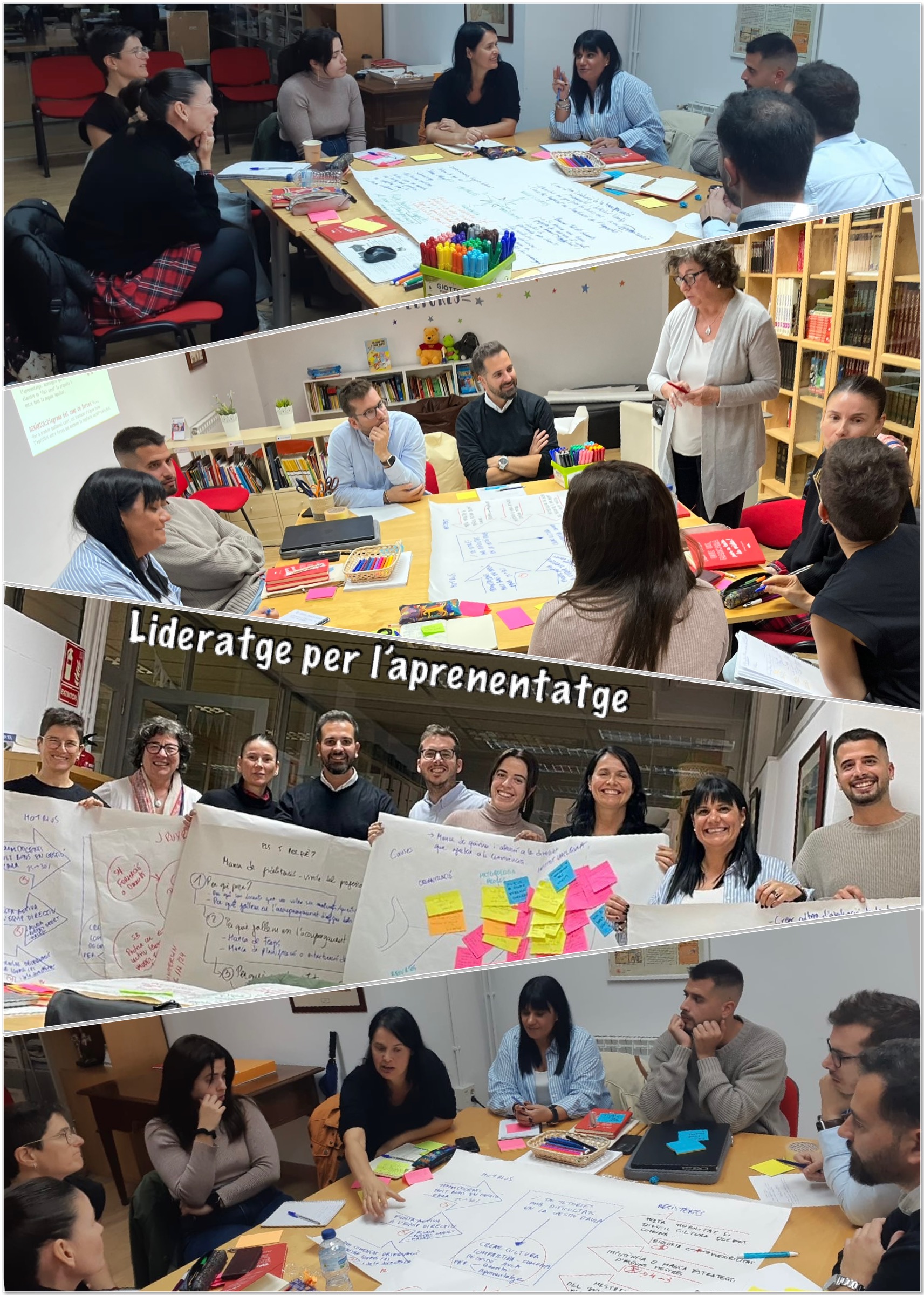 En la darrera sessió, vam visitar l’Escola Singuerlín amb la nostra formadora i altres centres participants de Catalunya. Els participants treballen tècniques innovadores com el problem thinking, per identificar i abordar reptes educatius, i el concepte de critical friends, per afavorir una xarxa de suport i reflexió crítica entre centres. Aquest enfocament pretén no només millorar la gestió interna de cada centre, sinó també establir una comunitat de col·laboració entre escoles per a l’intercanvi d’idees i bones pràctiques.