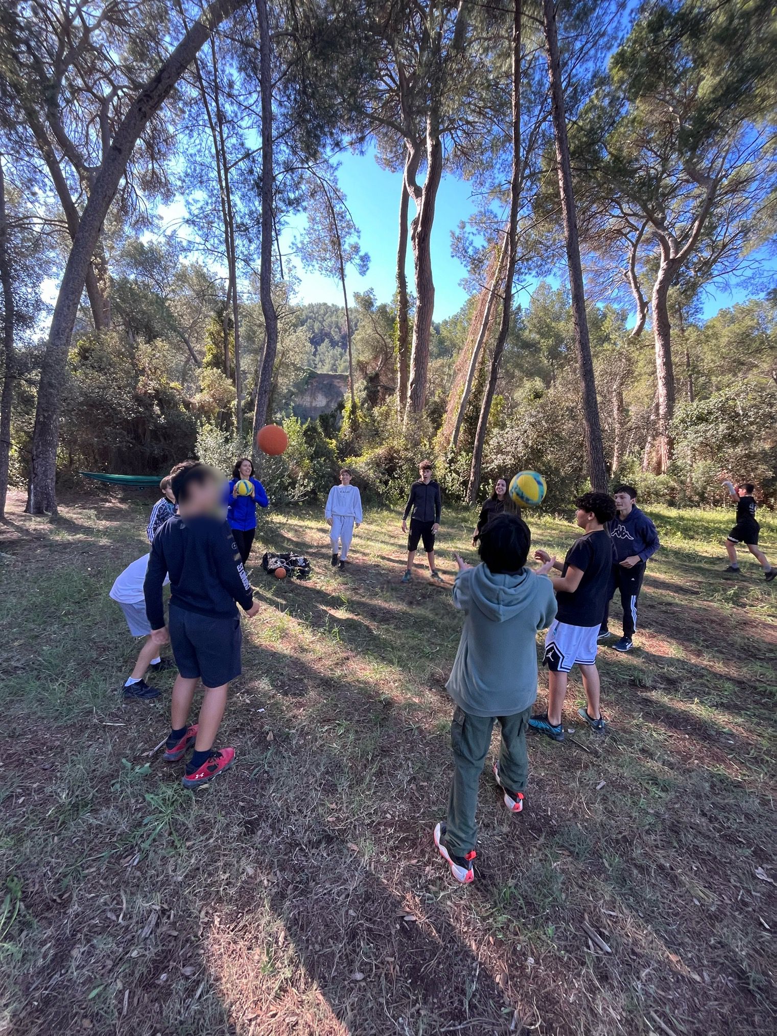 Un cop allà, l’alumnat va poder gaudir d’una estoneta d’esbarjo per esmorzar i van aprofitar per penjar una hamaca, joc lliure, construir cabanes i socialitzar entre cursos, fomentant la creativitat i la convivència en un entorn segur i natural.