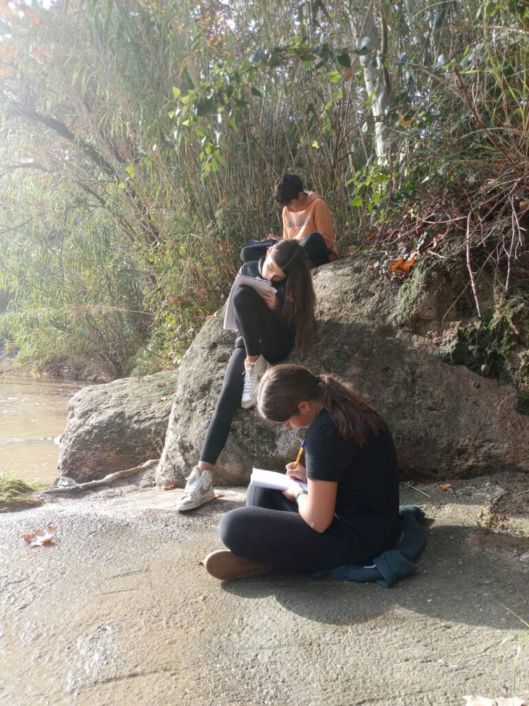 A la matèria de Llengua Catalana i Literatura, l’alumnat de 2n d’ESO està treballant una situació d’aprenentatge centrada a analitzar la figura literària dels rius en el context de la literatura universal, i també de la literatura catalana. I dimarts passat, vam baixar al riu a fer un taller de lectoescriptura per treballar la descripció com a tècnica literària i el paisatge com a metàfora visual de les nostres emocions.