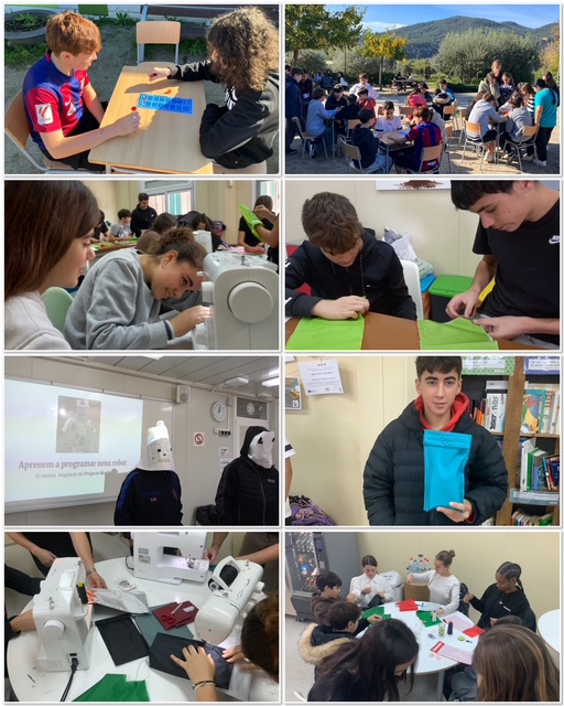 Les mares Noemà i Rut, expertes cosidores, ens han ensenyat a confeccionar embolcalls per als entrepans amb un toc personal i sostenible. Alumnes de 3r, van ser un gran suport en aquesta activitat. Algunes persones no van poder acabar-los, però hi haurà una segona oportunitat! S’habilitarà un espai a l’Àgora on la Núria, la nostra conserge, tutoritzarà el taller per completar-los.