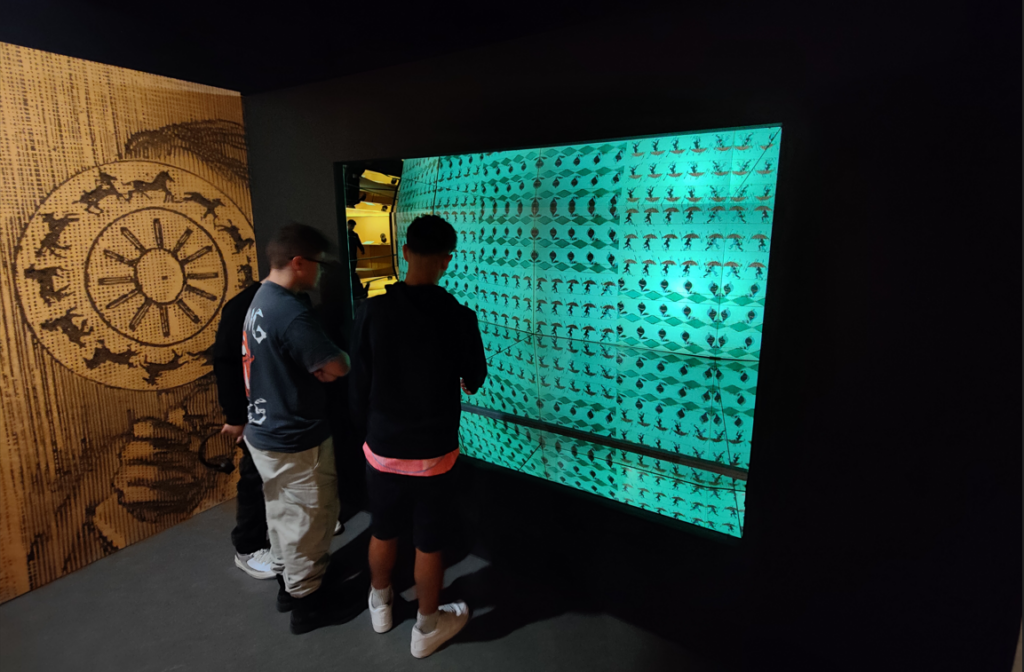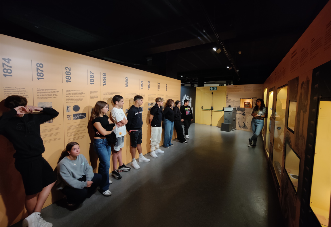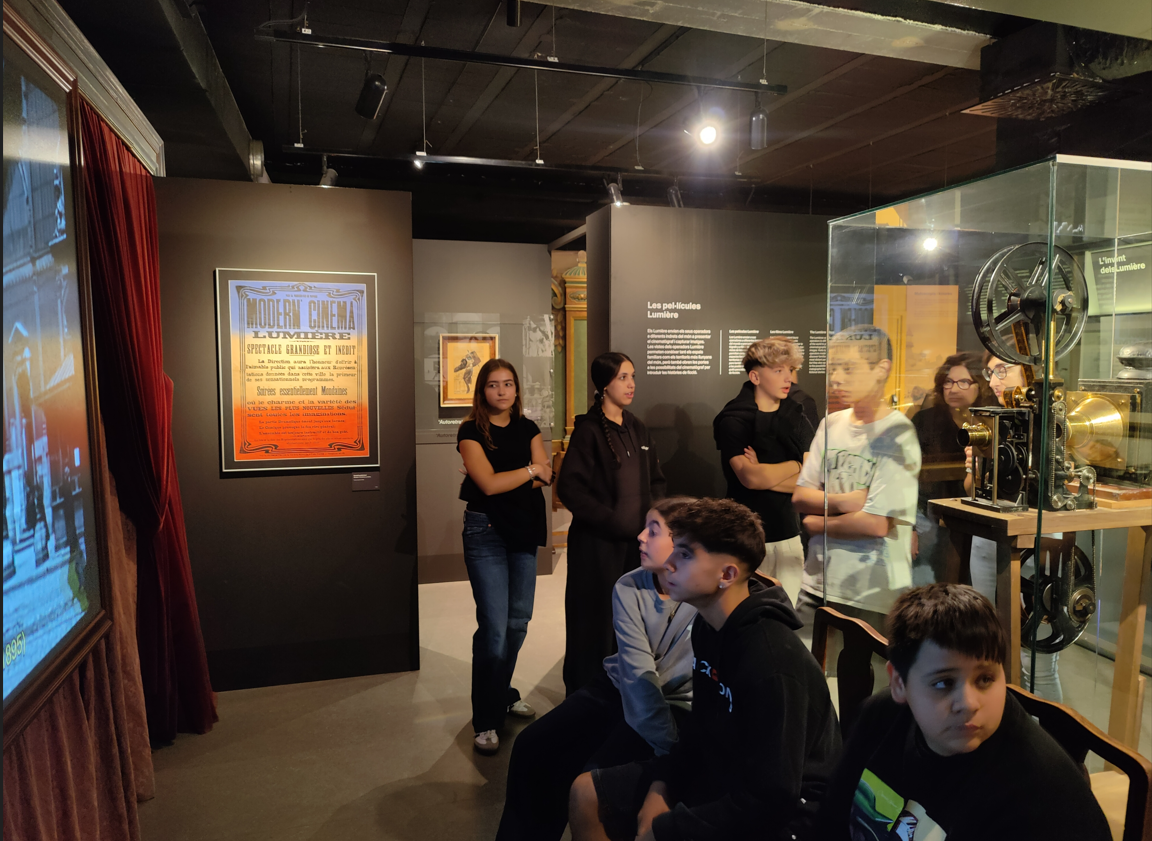 Un cop al museu, l’experiència es va iniciar amb una visita guiada a càrrec d’Anna Carpena Torrens, la responsable del servei educatiu del Museu del Cinema. Allà els alumnes van ser testimonis de les primeres tècniques de representació d’imatges, com els rudimentaris jocs d’ombres, els primers dispositius òptics com la cambra fosca o les caixes òptiques, així com dels successius intents de projecció d’imatges fotogràfiques en moviment que van donar com a resultat la invenció del cinematògraf per part dels germans Lumière.