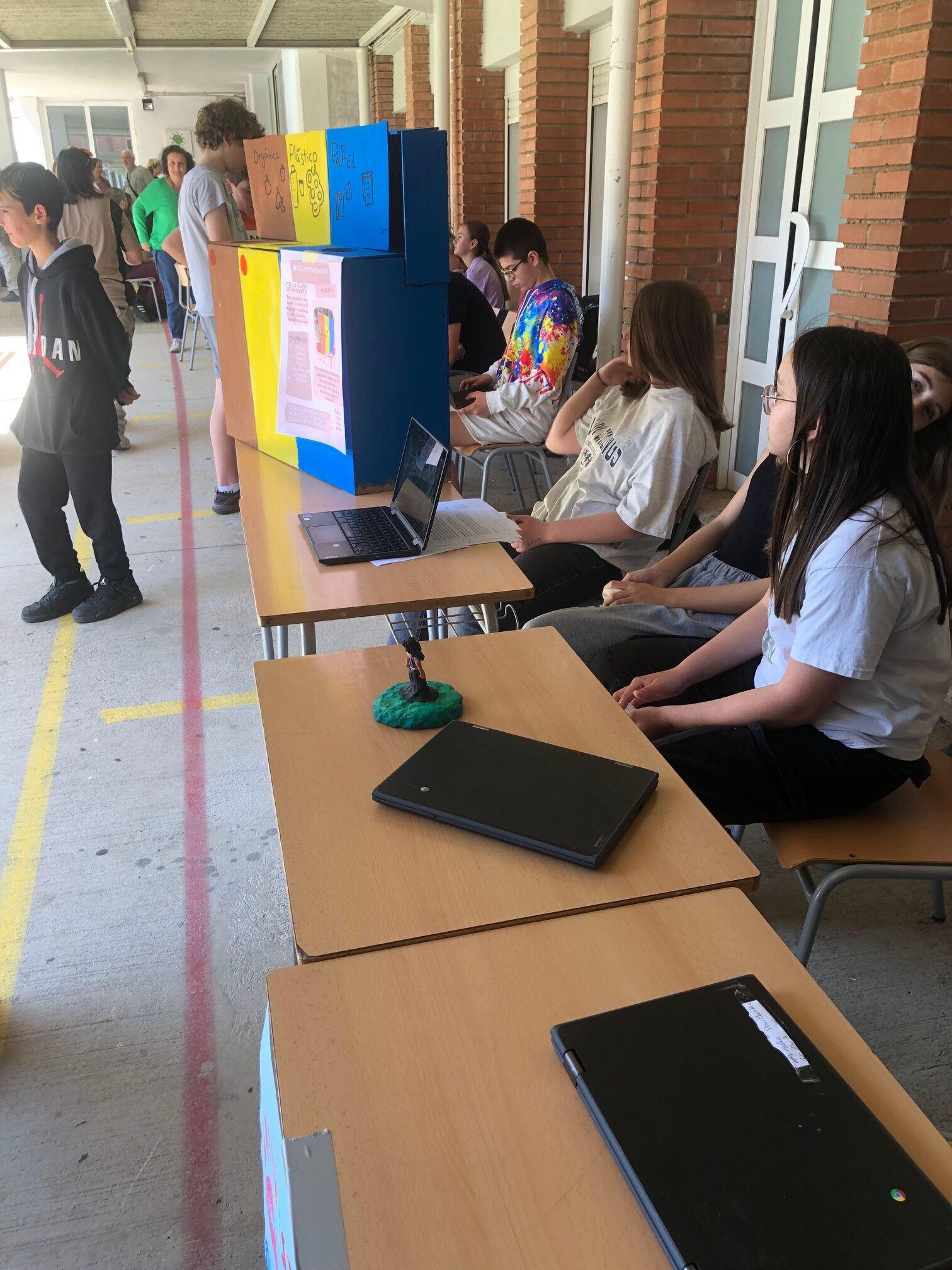 Va ser un dia bastant intens ja que diferents famílies van visitar-nos per veure els diferents invents creats, feia calor i estàvem nerviosos d’ensenyar la nostra feina.