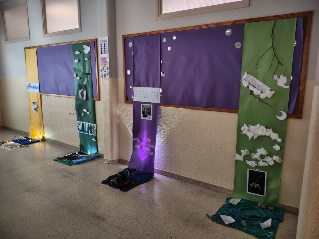 Avui al nostre centre escolar hem celebrat el Dia de la Pau amb una jornada molt especial, centrada en la pau interior com a eina d’introspecció personal. L’alumnat de Secundària ha reflexionat sobre la importància d’aturar-se, escoltar-se i cuidar el benestar emocional. Com a part de l’activitat, han construït els seus propis espais zen, dissenyats per fomentar la relaxació, la meditació i la calma mental. Aquests espais, inspirats en la filosofia japonesa, s’han caracteritzat per la simplicitat, el minimalisme i la connexió amb la natura. S’hi han utilitzat materials naturals, una il·luminació suau i elements com pedres, troncs, fulles… La jornada s’ha completat amb una sessió de mindfulness, que ha ajudat l’alumnat a reduir l’estrès i a prendre consciència del moment present. Ha estat una experiència enriquidora que ens recorda que la pau també comença dins nostre.