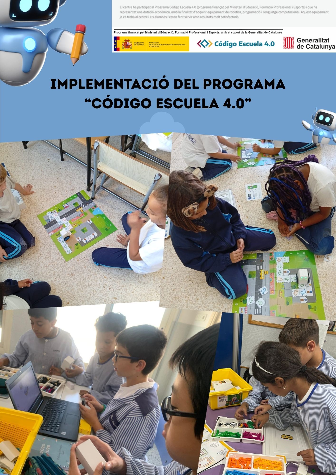 En el marc del programa “Código Escuela 4.0”, el centre ha adquirit equipament de robòtica, programació i pensament computacional que s’està utilitzant amb l’alumnat de les diferents etapes.45