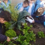 La setmana passada, els infants de 1r de Primària vam fer collita a l’hortet! Vam collir un bon manat d’espinacs, els vam rentar i ens els vam menjar! Que bons i tendres que eren! També vam acabar de collir els alls tendres que quedaven i els vam sortejar entre nosaltres. Seguim deixant espigar el bròquil per veure’n el procés de reproducció; ara està fent flors, per fer després les llavors. A més a més, també vam aprofitar que ja s’acosta la primavera per deixar l’hortet ben bonic! Vam etiquetar totes les hortalisses que hi tenim i també vam plantar faves, pèsols, cabdells i maduixeres! Quantes coses que aprenem a l’hortet!