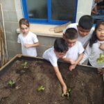 Els infants de 1r de Primària ja tenim l’hortet a punt! Aquesta setmana, després d’haver anat a comprar el planter, hem omplert l’hortet de primer! Ja ho tenim tot plantat i quin goig que fa! Hem plantat diferents tipus d’enciams: de fulla de roure, enciam llarg i enciam francès; també hem plantat escaroles, una col llombarda, un bròcoli, porros i un bròquil verd.