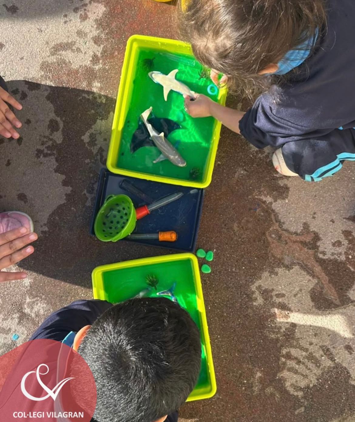 A Infantil, treballem el projecte de l’aigua a través de l’experimentació directa de les seves propietats. Mitjançant activitats com els transvasaments, el sura o no sura i les creacions amb aigua al terra de la pista, els infants observen, proven, fan hipòtesis i descobreixen coses noves, tot aprenent de manera vivencial.