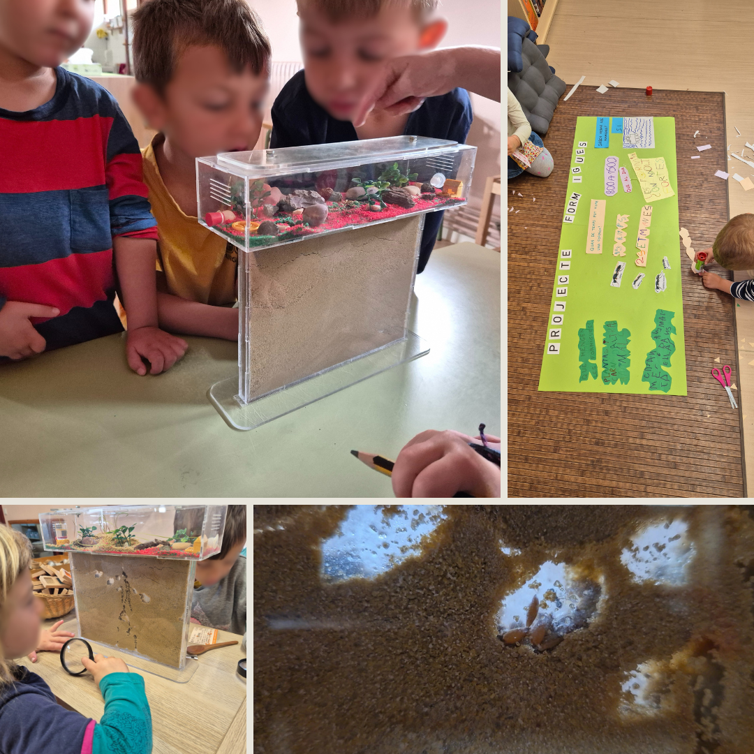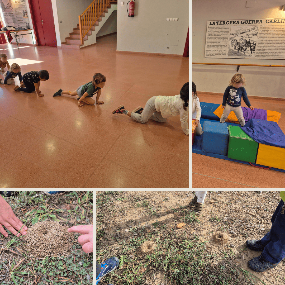 Teníem el dubte de com era un cau de formigues, alguns infants ja n’havien donat alguna idea però vam fer una sortida d’entorn a la recerca de caus de formigues i en vam acabar trobant molts! Després de reflexionar-hi una estona i imaginar-nos com devia ser el cau de formigues sota terra i que no podíem veure però que en teníem una mostra a l’escola, vam acabar deduint que hi ha caus de formigues que es comuniquen entre ells i el més important de tots, vam estar tots/es d’acord que no podem molestar mai a les formigues i que no els podem tapar el forat d’entrada i sortida dels caus.