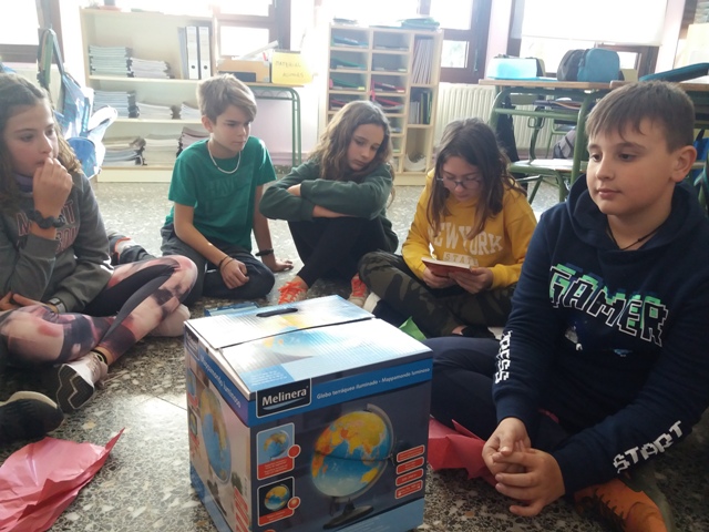 Ens van portar: dos llibres de lectura, dos jocs de taula, i un globus terraqüi.