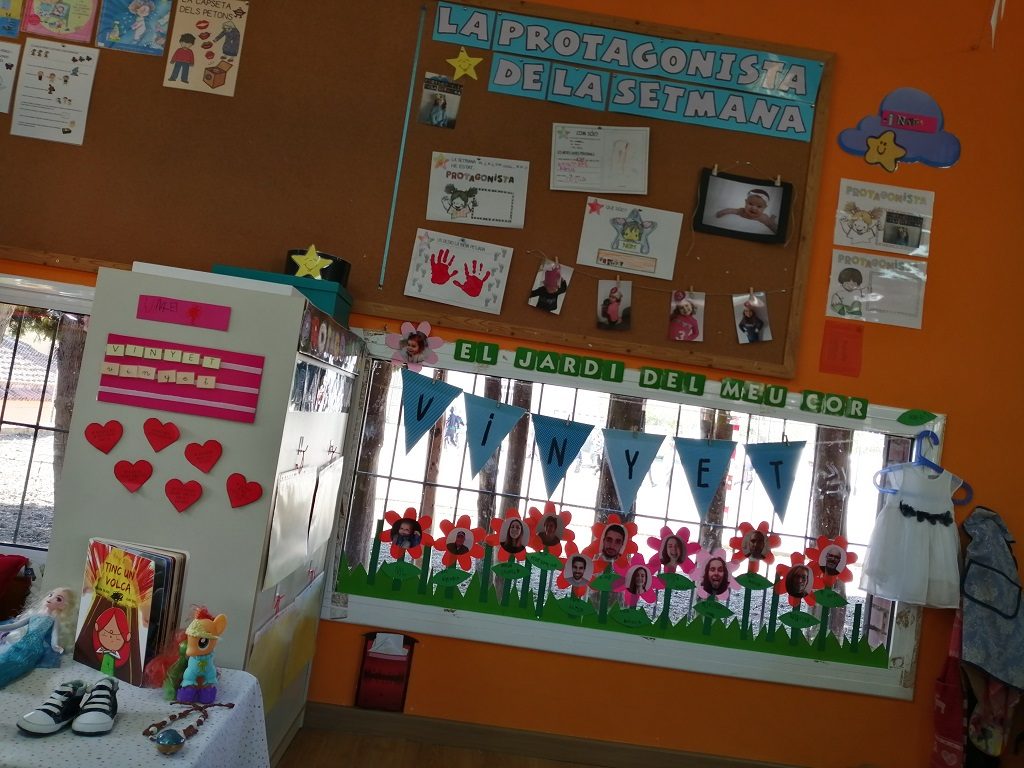 Durant la setmana muntarem un racó i una cartellera a l’aula amb totes les seves pertinences i els treballs que anem realitzant. El/la protagonista triarà un de tots els elements que ha portat per realitzar l’activitat “ensenyar i explicar”, en la qual el presentarà i els companys/es li faran preguntes a mode d’entrevista, que haurà d’anar responent el més detalladament possible. Treballarem el seu nom amb l’activitat “un pot de lletres”; el seu cos (com sóc, quines parts del meu cos m’agraden més, com em veig, com em veuen…); les seves dades personals (data i lloc de naixement, edat i lloc de residència); la seva família i els vincles més especials, amb l’activitat “el jardí del meu cor”… i altres activitats que sorgiran, en funció de les aportacions de cada infant i família. Durant la setmana, la família està convidada a entrar a l’aula i realitzar alguna activitat amb la finalitat de compartir una estona amb el grup: un conte, una cançó, una dansa, un joc de taula, una recepta de cuina, una manualitat… qualsevol idea serà benvinguda!