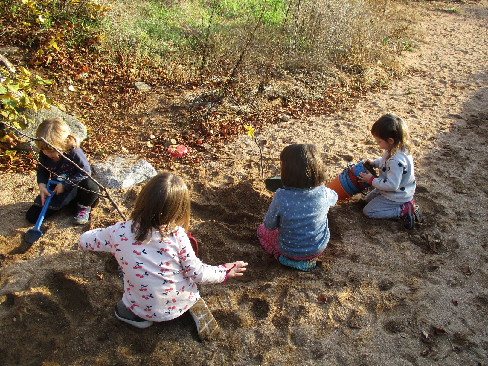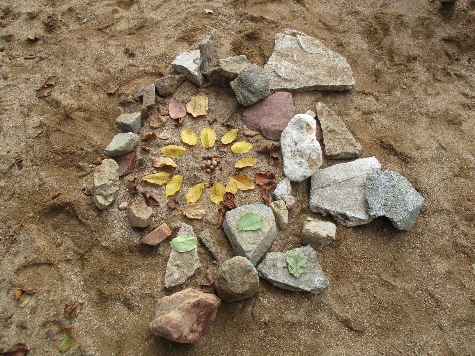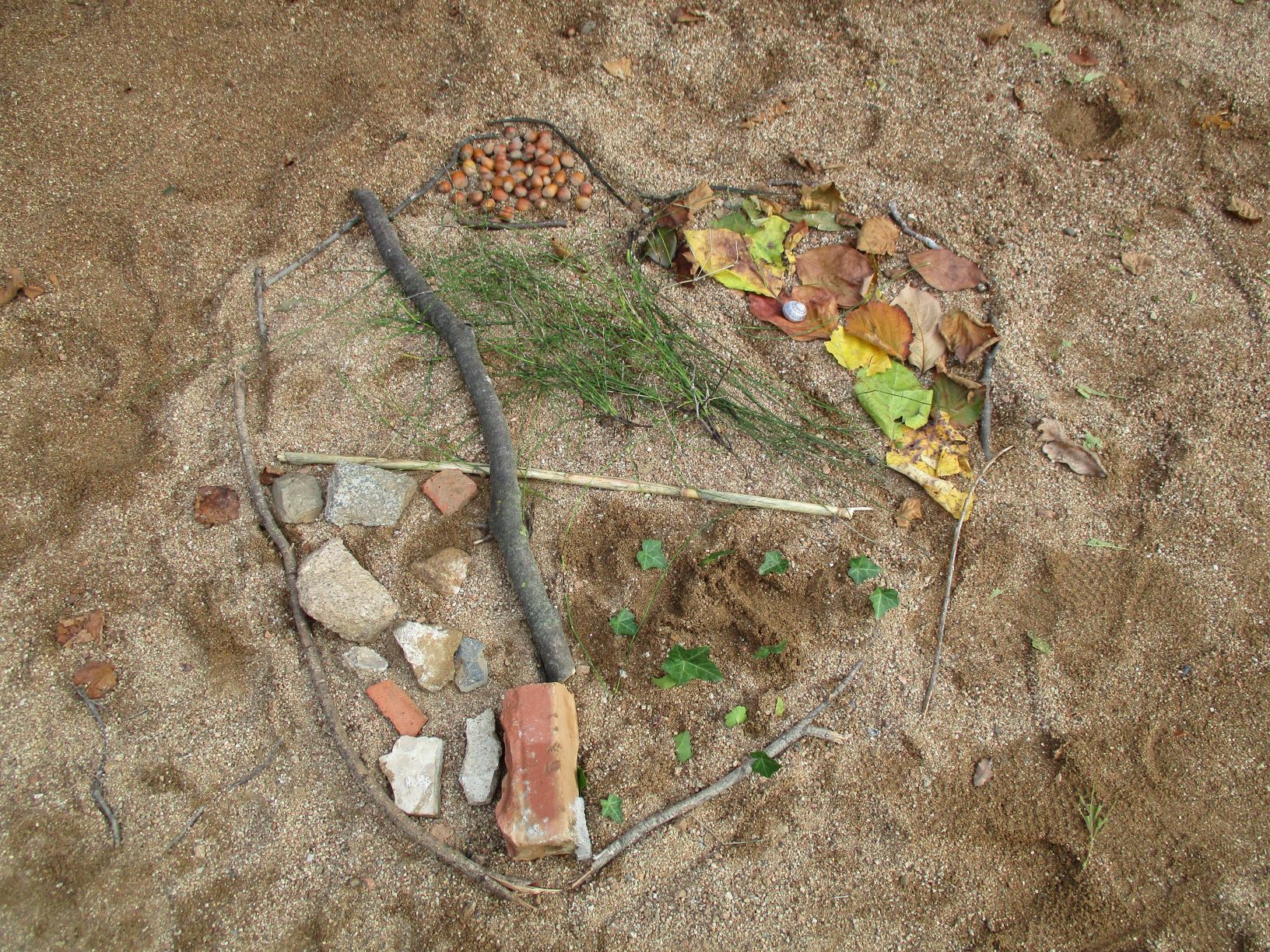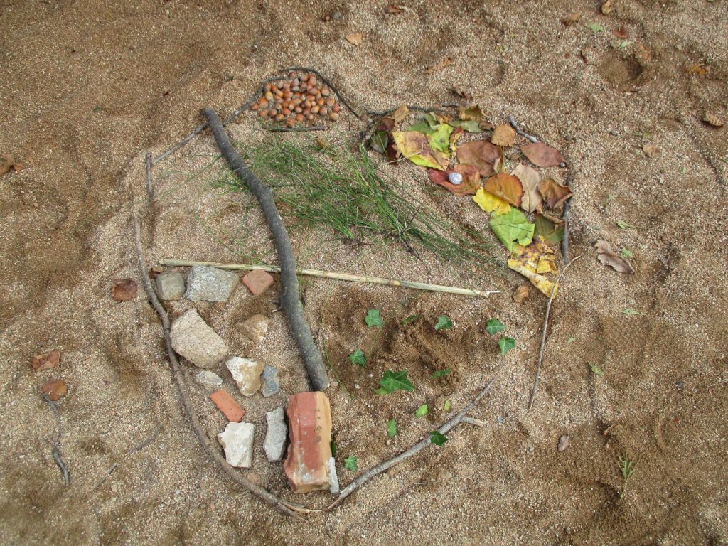 Aquest començament de curs ha estat una mica estrany. A la classe dels petits hem aprofitat per sortir molt pel voltant de l’escola. Durant les primeres setmanes anàvem molts dies a la rasa, dues o tres tardes a la setmana. Ara que ja ha arribat el fred hi acostumem a anar un cop per setmana. I com que hi hem anat molt, hem aprofitat per recollir moltes coses i fer obres d’art efímeres, sí d’aquestes que es fan i després es desfan o elles soles desapareixen amb el pas del temps.
