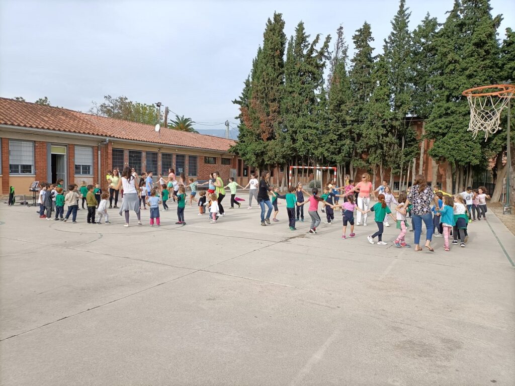 A l’Aleixar ho vam celebrar dins de la pista de l’escola els/les nens i nenes des de P3 fins a 6è i vam tenir també de convidats especials alguns infants de la Llar els Napets acompanyats per la Sarai.