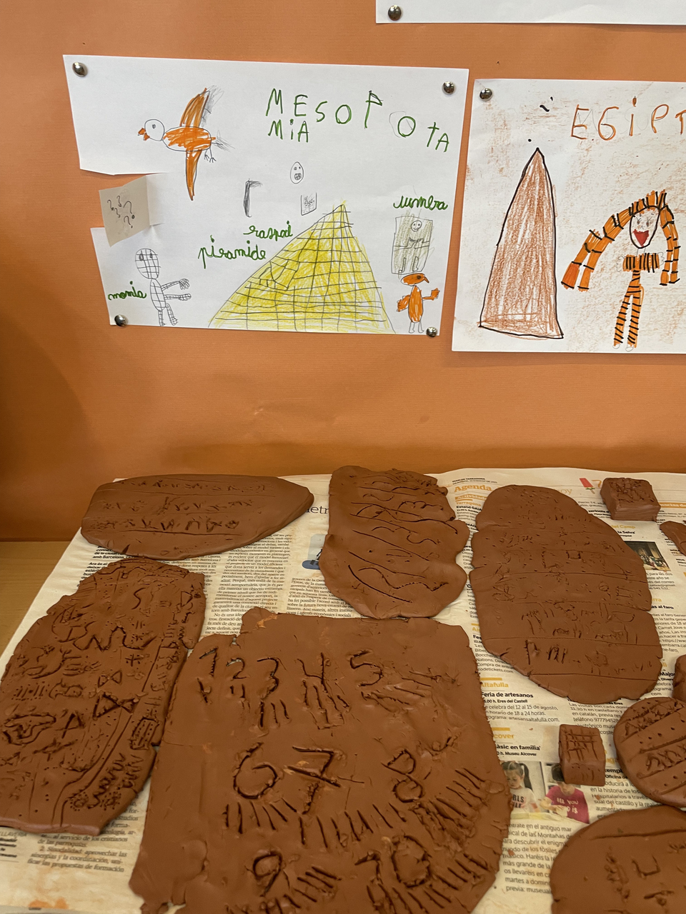 Al llarg d’aquestes primeres setmanes hem viatjat a la Prehistòria i a l’Edat Antiga ( perses, egipcis, grecs i romans), tot coneixent els principals invents i descobriments que fins avui dia encara perduren. A la classe hem construït e inventat armes i eines com feien a l’edat de pedra, hem realitzat pintures rupestres i també hem descobert com fer foc!  Â