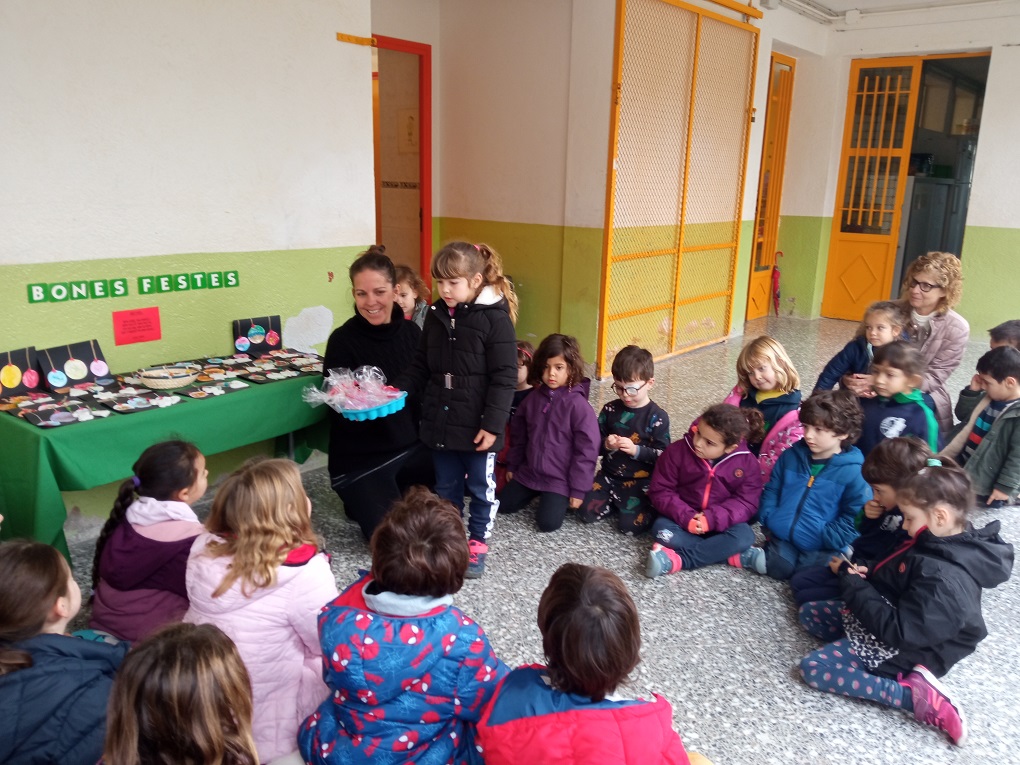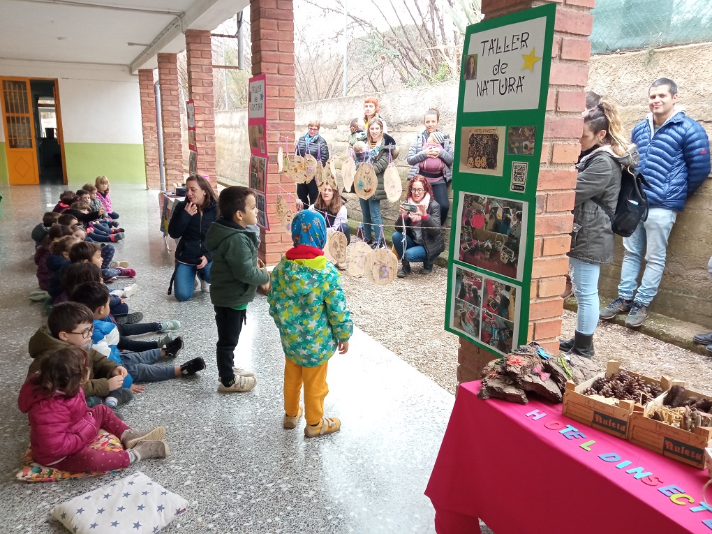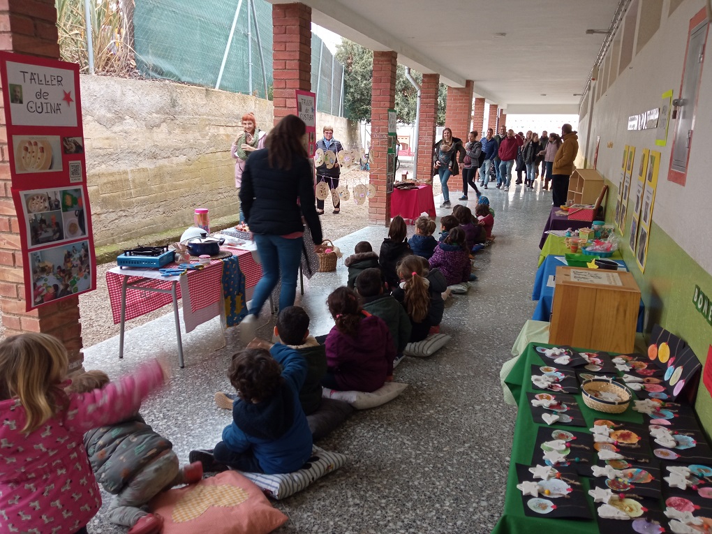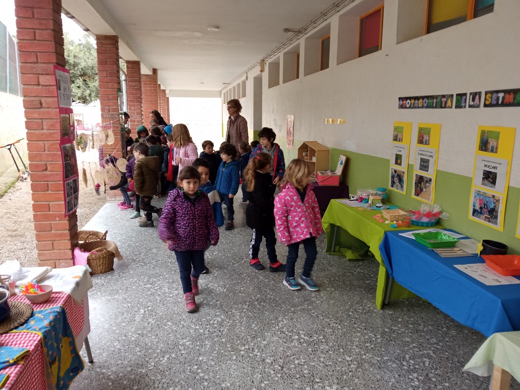 En un primer moment, hem convidat als 3 grups classe de primària amb les seves mestres. Hem explicat en què ha consistit cadascuna de les activitats, i han pogut gaudir d’un recorregut en companyia de l’alumnat guia d’infantil, que anava complementant els detalls de l’explicació, mentre observaven els productes realitzats i les mostres dels processos.