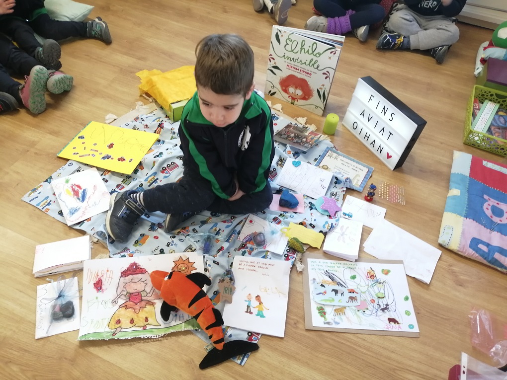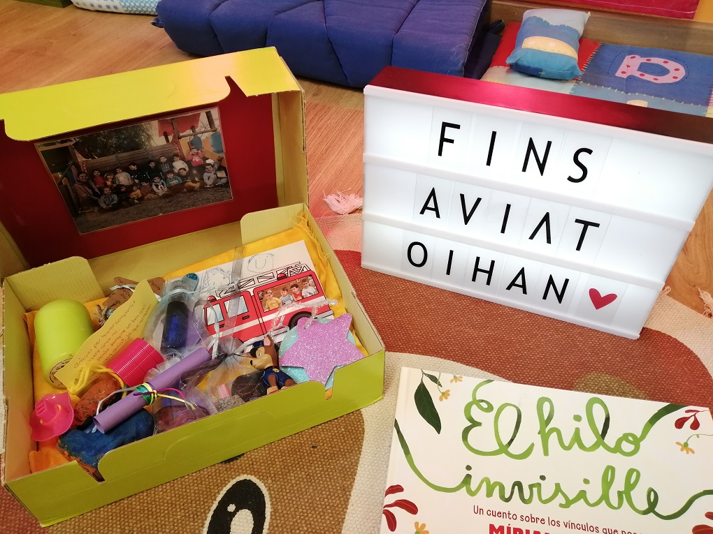 Dibuixos bonics, fotografies, notes amb missatges plens d’afecte, records de l’època de la llar d’infants, ninos, pedres màgiques, objectes significatius… amb què vam envoltar l’Oihan! i vam crear una bonica CAPSETA DE RECORDS per regalar-li, i que conté un bocinet del nostre cor.