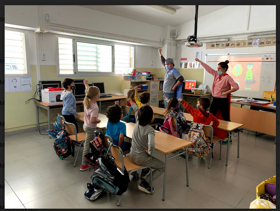 Els nens i les nenes de cicle inicial hem rebut la visita de Superpoma i Superalbergínia, dos superherois de Superfrutis!!!