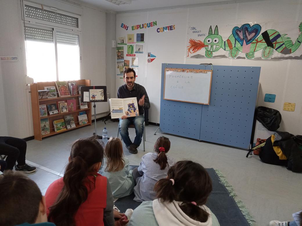 Li encanta visitar nens i nenes a les escoles per a fer arribar les seves estrambòtiques i divertides històries.