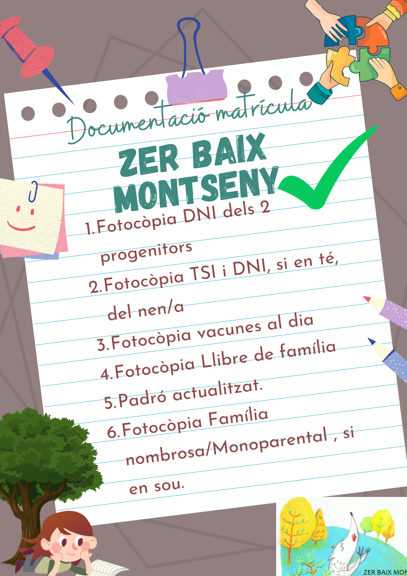 Per formalitzar la matrícula d’un nou alumne, caldrà portar degudament complimentats aquest formularis i adjuntar Còpia del carnet de vacunacions de l’alumne o alumna. Si no es té el carnet de vacunacions, s’ha d’aportar un certificat mèdic oficial o el carnet de salut de l’infant en el qual figurin les dosis de les vacunes rebudes amb les dates corresponents. Si el vostre fill o filla no ha estat vacunat per indicació mèdica o per altres circumstàncies, cal aportar un certificat mèdic oficial justificatiu.