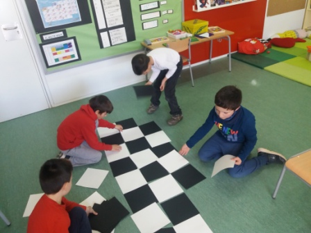 Un cop construït, amb èxit, gràcies al treball en equip, encara hem resolt alguns interrogants més: Quantes caselles hi ha? Quantes són blanques? I negres? Quantes caselles té una fila? I una columna? Quantes caselles té la diagonal més llarga?