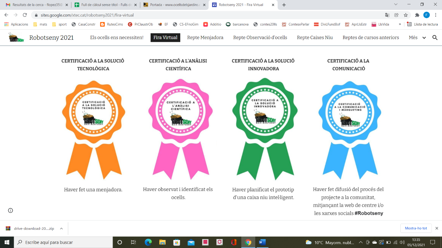 El curs passat els infants de l’escola van participar en l’edició virtual de la Robotseny (https://sites.google.com/xtec.cat/robotseny2021/els-ocells-ens-necessiten). El tema ha treballar durant el curs va ser els ocells. Durant tot el curs es va estar treballant els ocells del nostre pati.