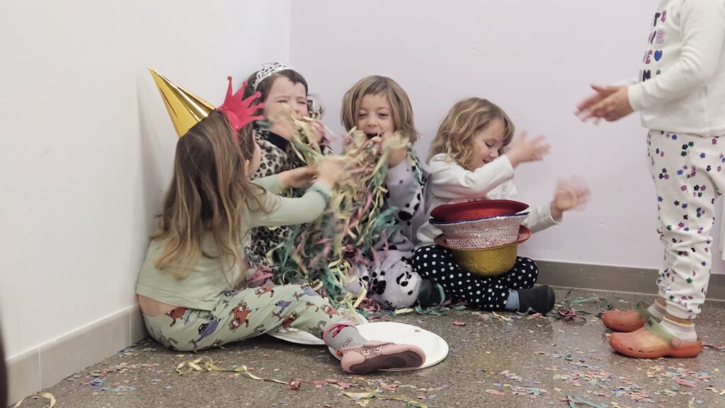 En aquestes sessions hi participen els infants de la Llavor (I1 i I2) i del Niu (I3 i I4), amb l’observació i acompanyament de tres mestres. Això possibilita que l’infant se senti segur per desplegar tot el seu potencial creatiu i imaginatiu.